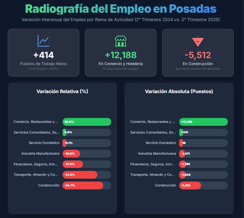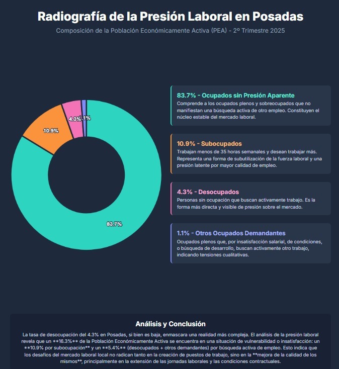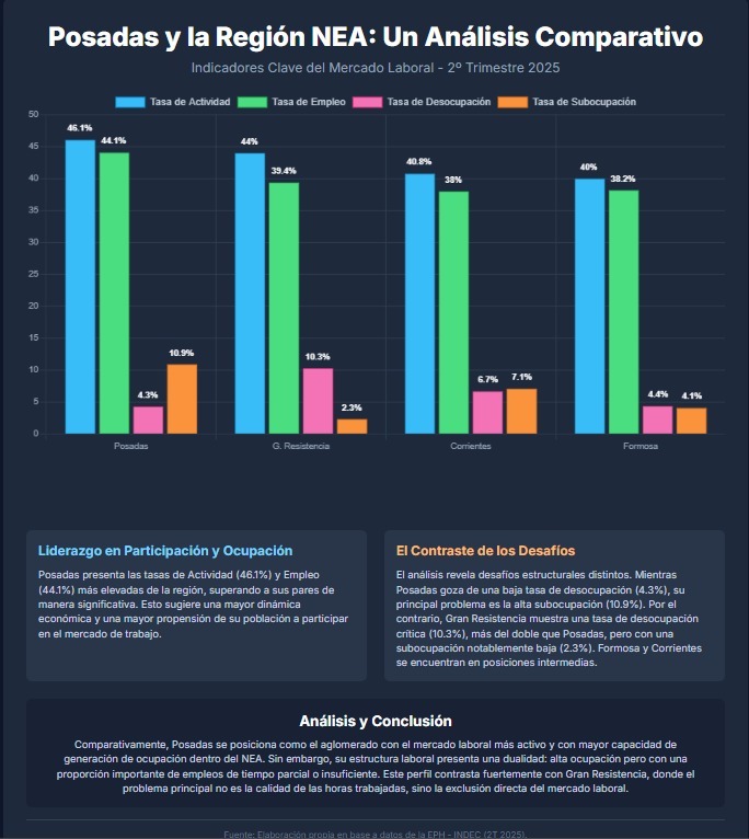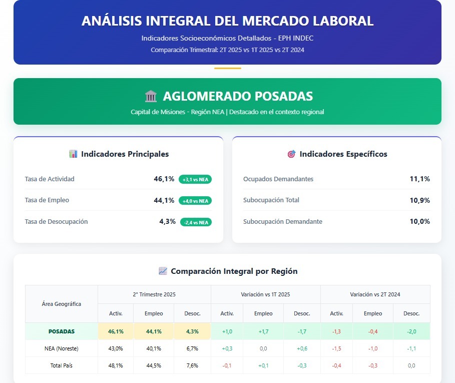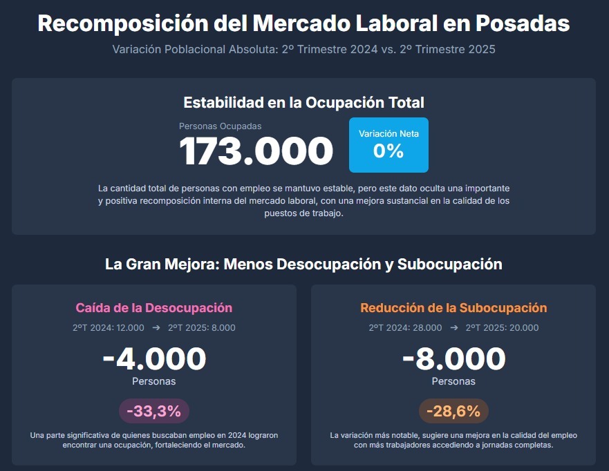 Con base en la más reciente información sobre la Encuesta Permanente de Hogares (EPH), en el segundo trimestre de 2025 el mercado laboral en el aglomerado Posadas se comportó del siguiente modo:
